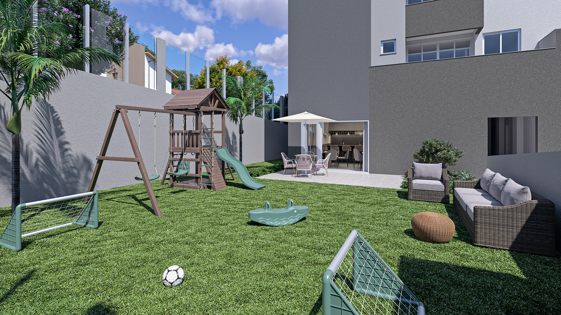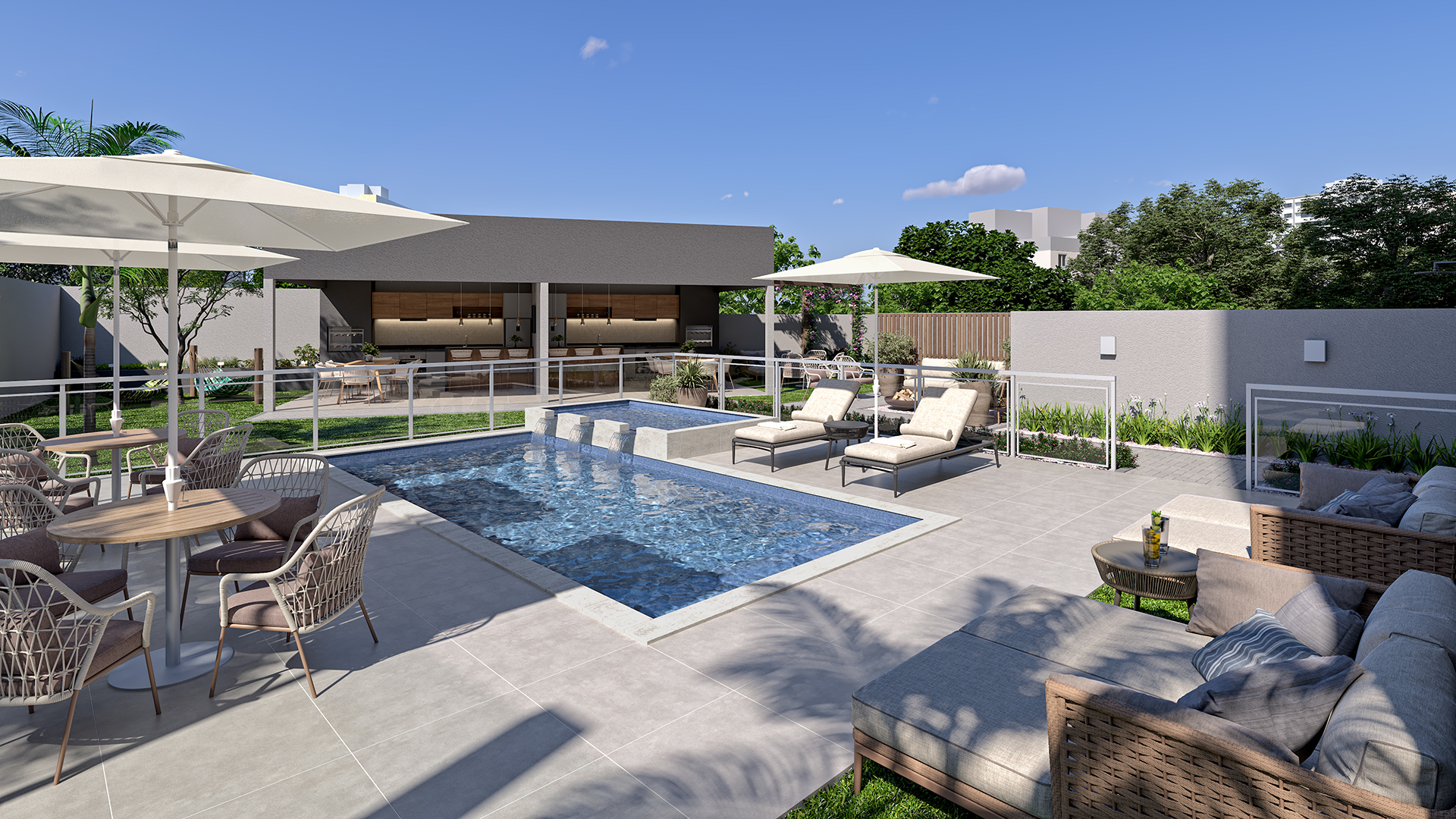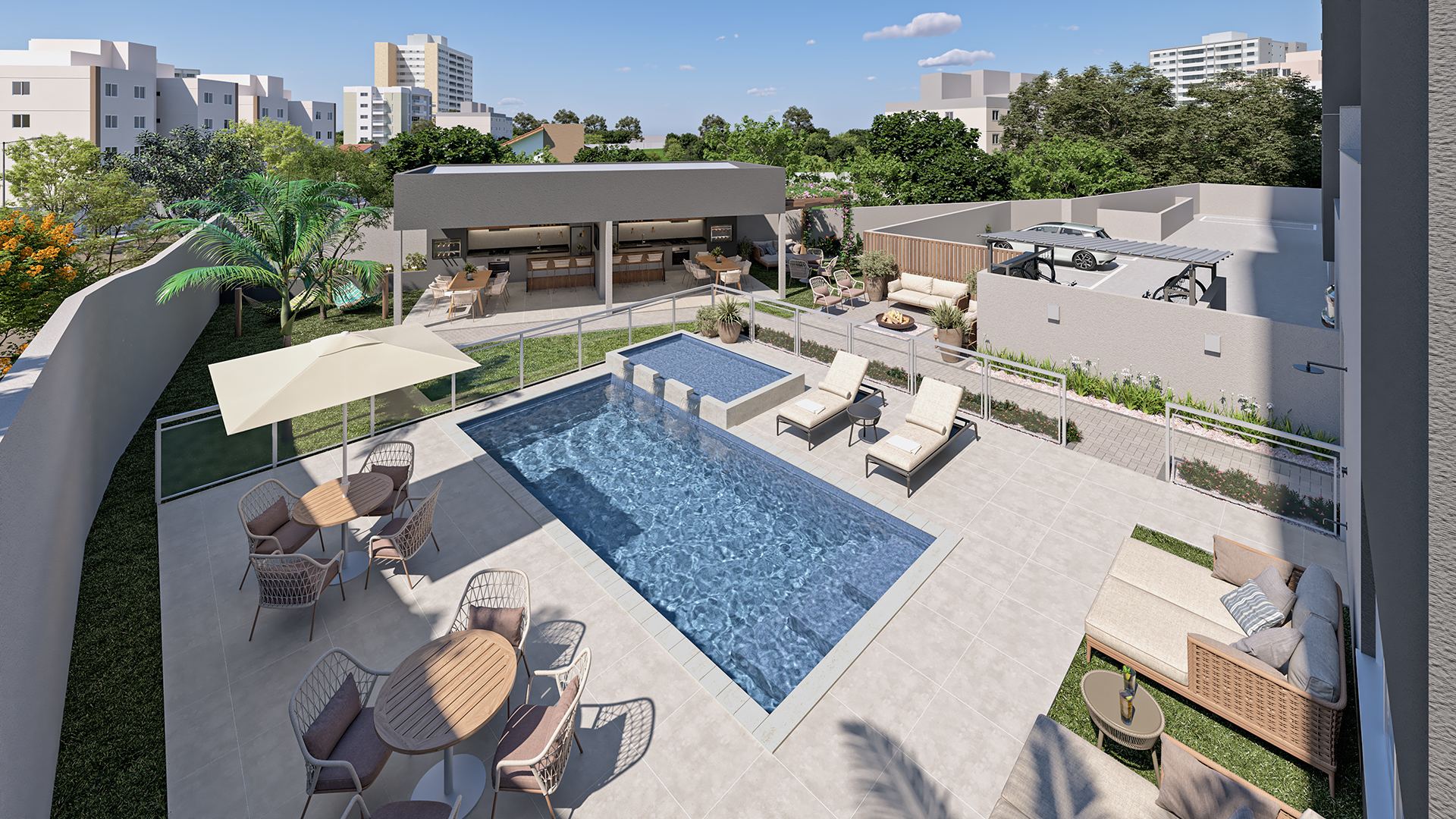 A área comum do condomínio é um convite ao bem-estar: um lazer completo para aproveitar com a família, as crianças, os amigos — ou simplesmente para relaxar no seu dia a dia.
