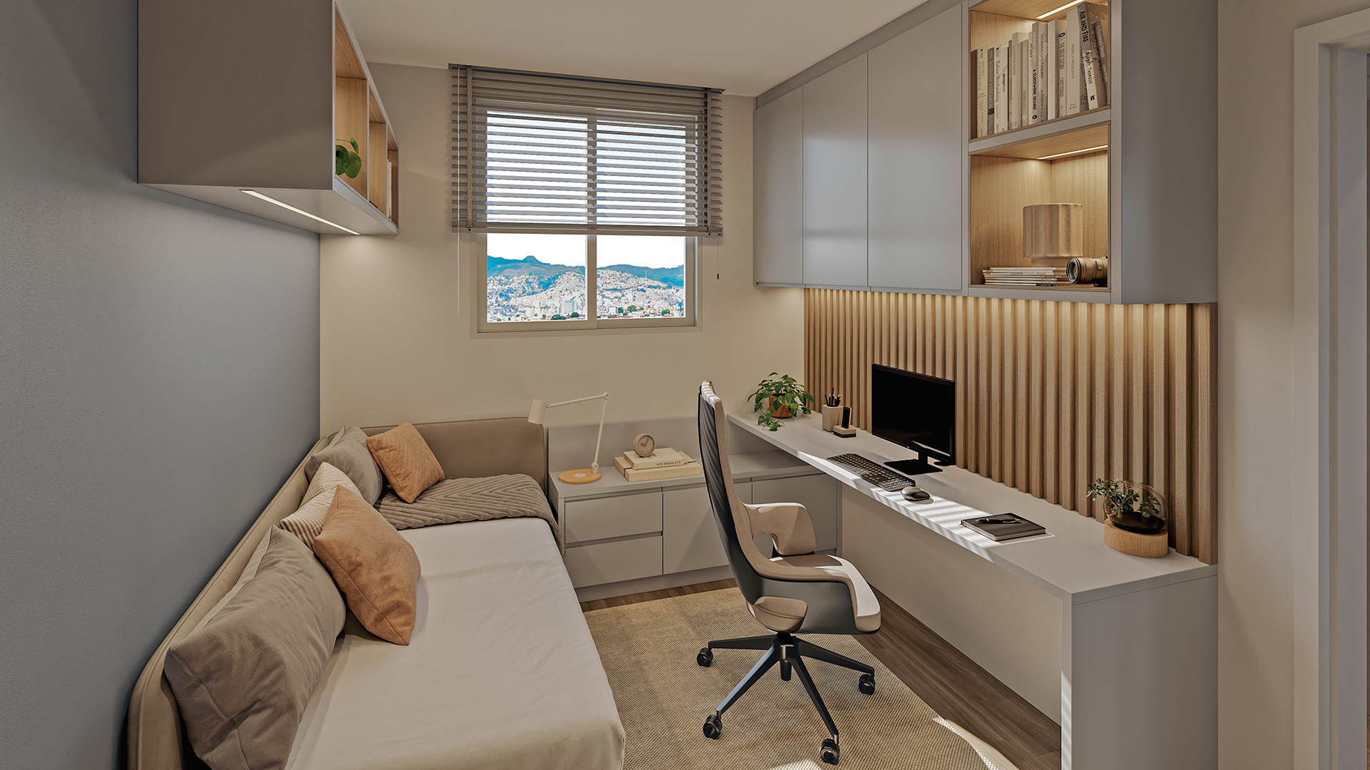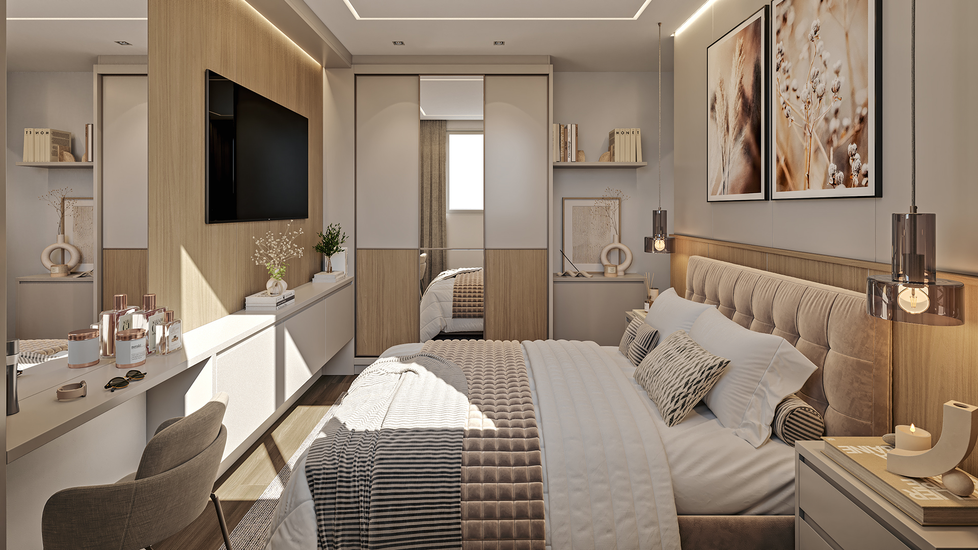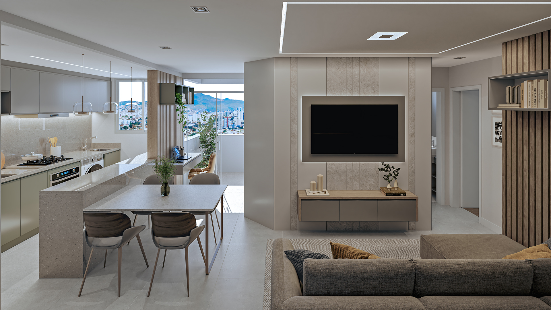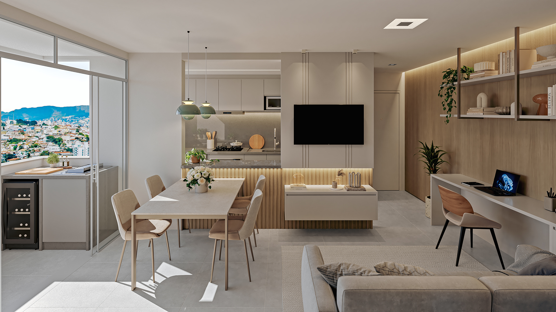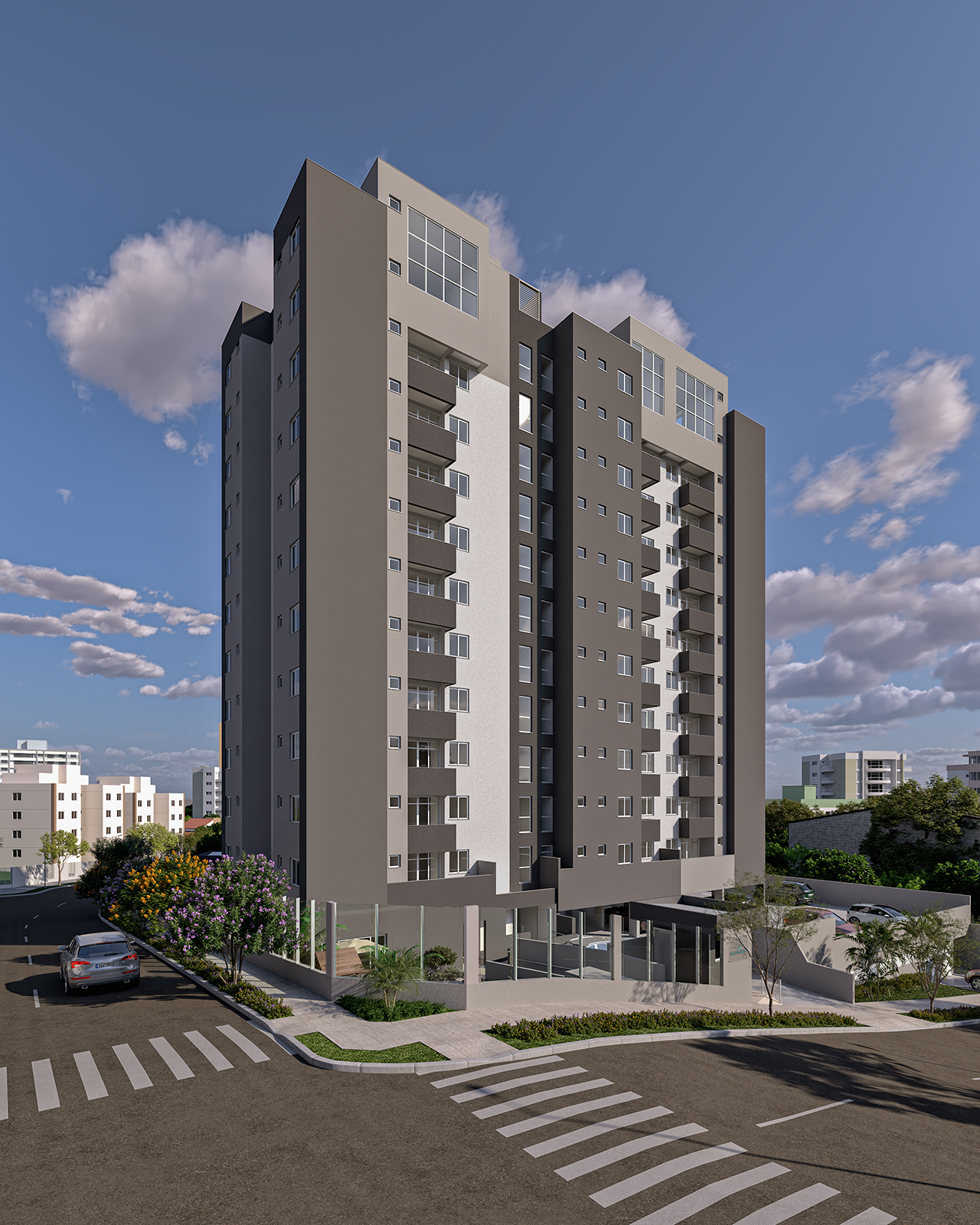 O projeto oferece apartamentos de 2 quartos com suíte e varanda, com sala e cozinha integradas, proporcionando mais conforto e funcionalidade. São 66 unidades, incluindo 6 apartamentos garden e 6 coberturas, pensadas para diferentes estilos de vida.